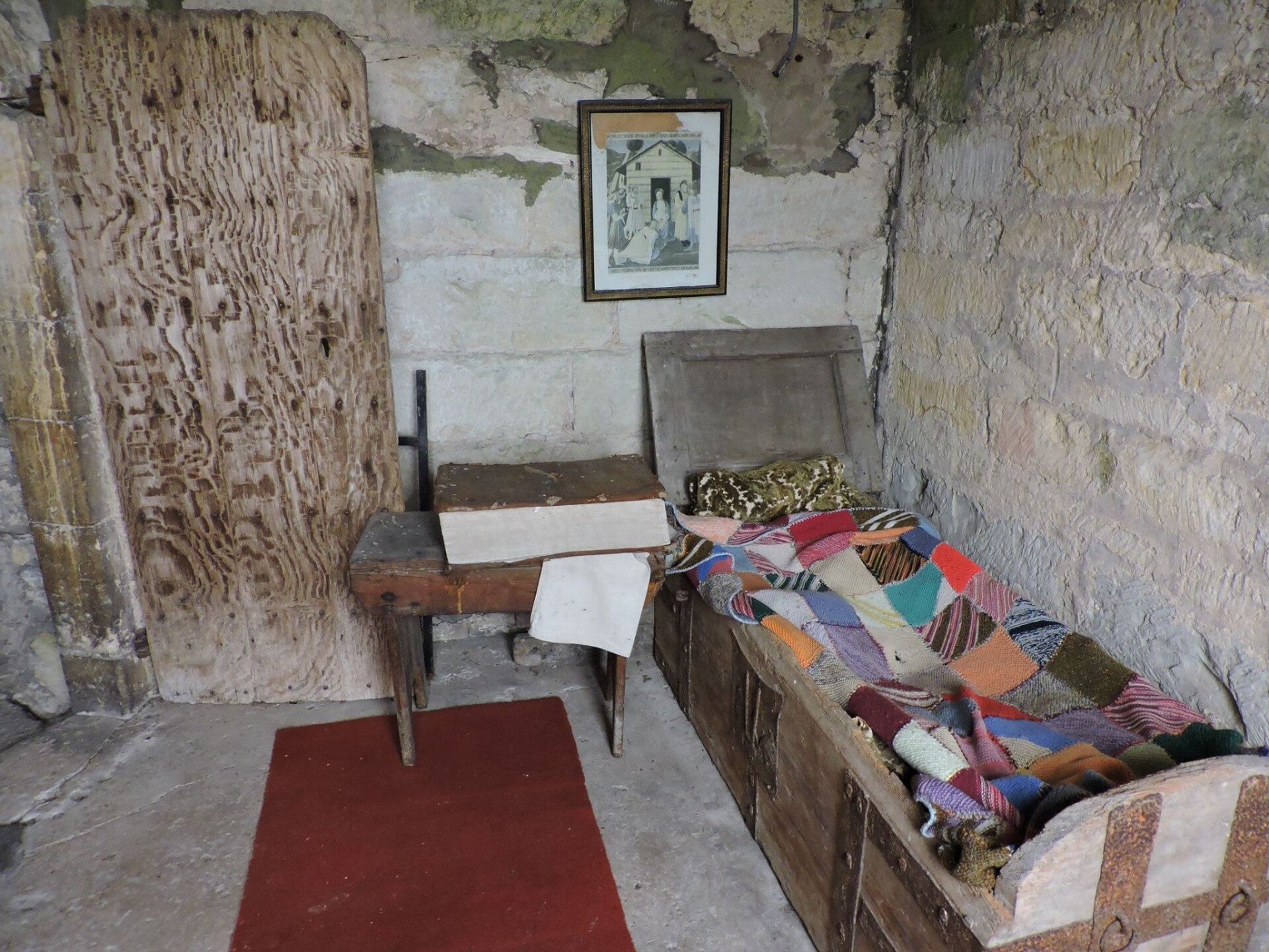 The story of a lone village widow whi, faering the great plague spreading from London, lived a hermits in an old priests room.